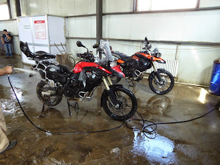 Danach erledigten wir die für uns wichtigen Sachen, nämlich Motorradwäsche. Wir befreiten unsere Motorräder von einigen Kilogramm Restschlamm und Sand, wobei Zuhause mindestens noch 2-mal nachgereinigt werden muss.